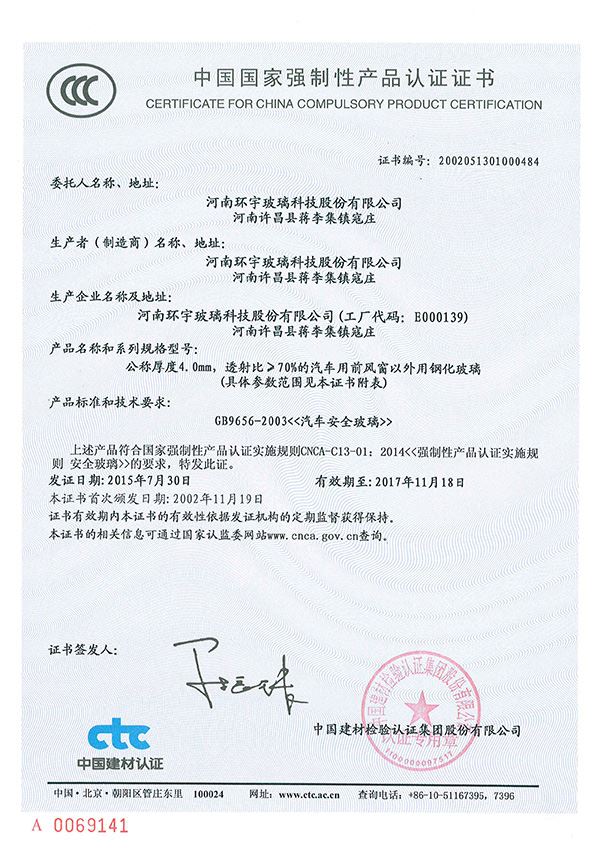 2004年,許昌環(huán)宇安全玻璃有限責任公司正式成立
